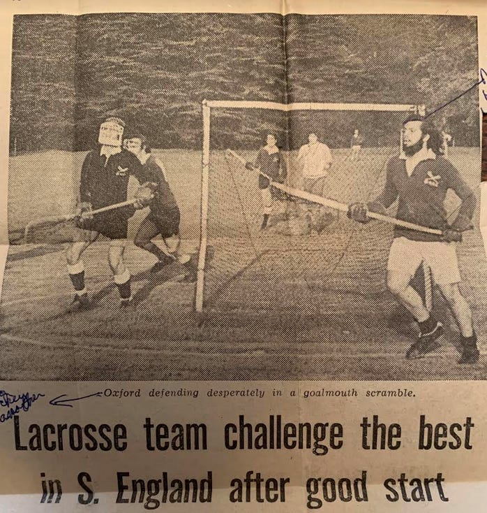 Other things fed into a sense that this was where I belonged. I was cast in an OUDS production out of fresher’s auditions — not something an American could expect — but the part wasn’t all that big so I joined the university lacrosse team and became a starter. Guys, blokes, banter, communal baths after the match with a serious booze-up to follow.