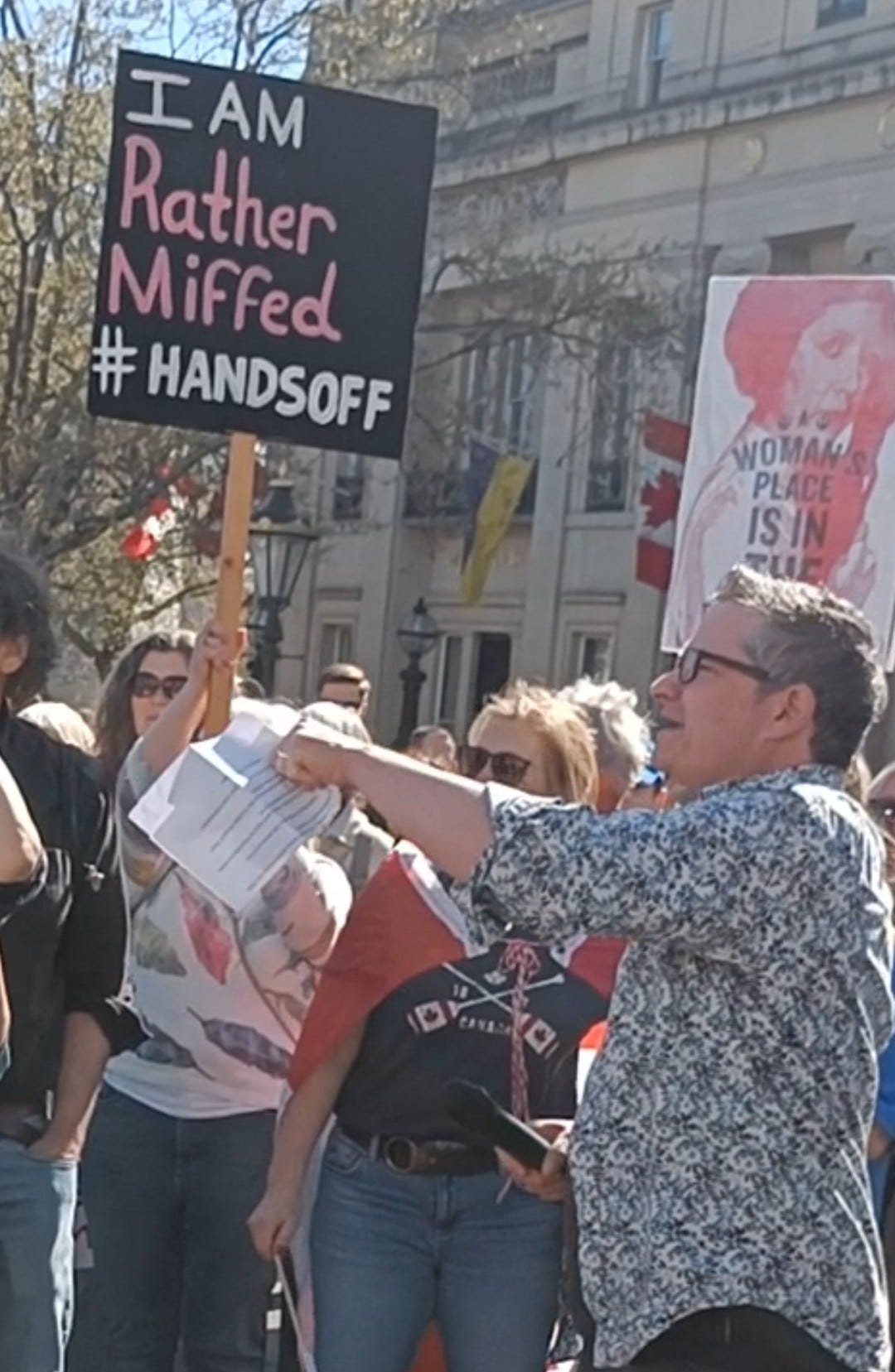 Erich McIlroy pictured above is a stand-up comic and he made an important point in his opening speech: Mockery is an excellent non-violent tool.