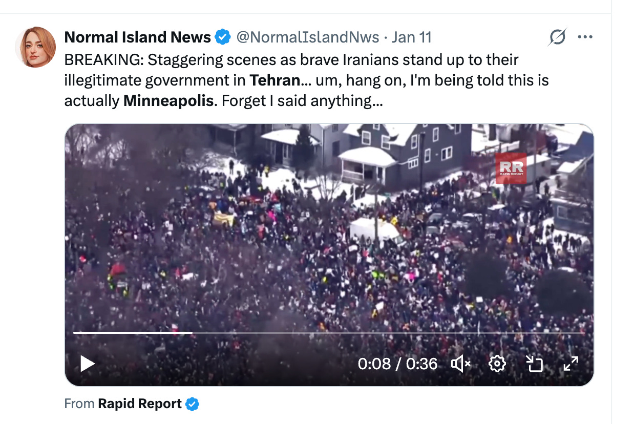 Looking at the images in social media from Minneapolis did make me think of Iran, however. The idea behind First Rough Draft of History, was to put current events into historical context drawing on my decades as a journalist, writing history’s first rough draft — and just having lived through “interesting times”.