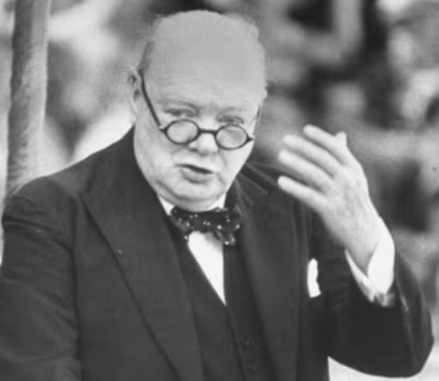 The Churchill quote comes from a House of Commons debate in November 1947. Churchill’s Conservatives had been voted out of office in a landslide in 1945. The Labour Party, as pledged in its manifesto, was creating what would be called the Welfare State, with guaranteed state pensions (social security) and National Health Service. Big industry would be taken out of the private sector.